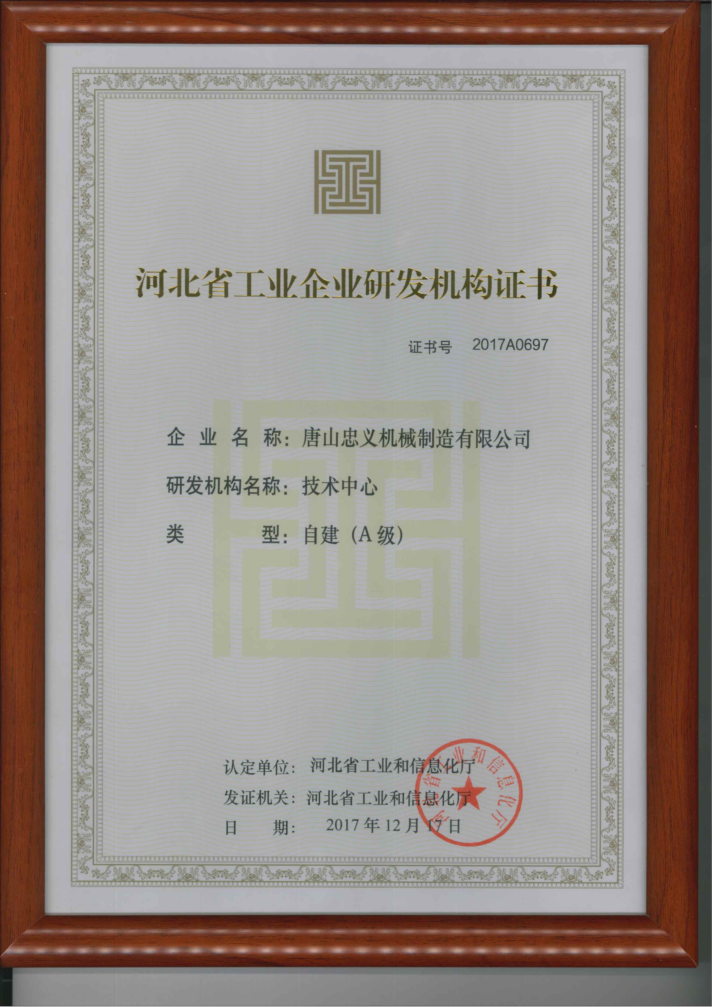 河北省工業(yè)企業(yè)研發(fā)機(jī)構(gòu)證書彩色原版 發(fā)布時(shí)間:2025-08-18 點(diǎn)擊: 388 上一條: 河北省專精特新中小企業(yè) 下一條: 河北省科技型中小企業(yè)證書(新)